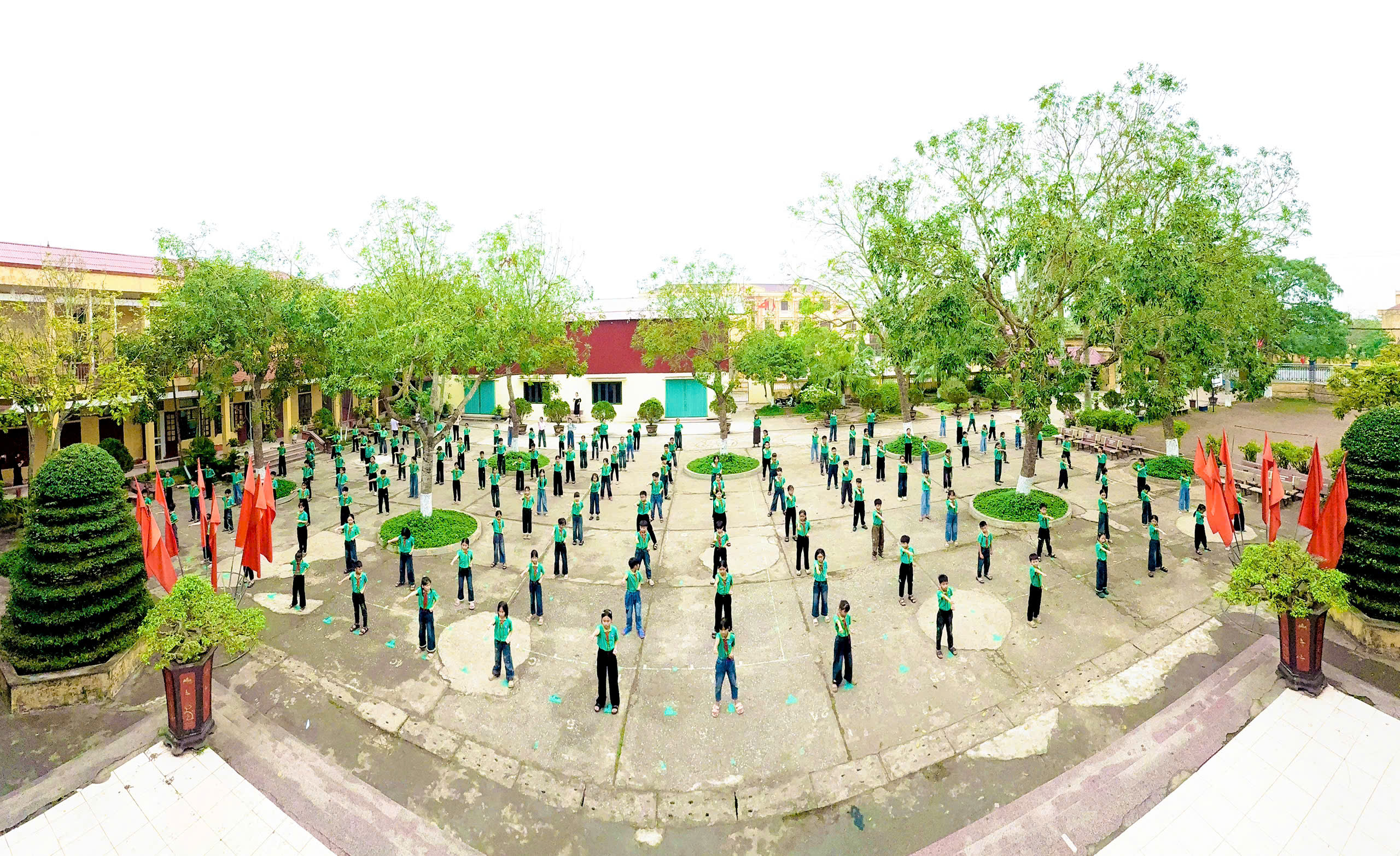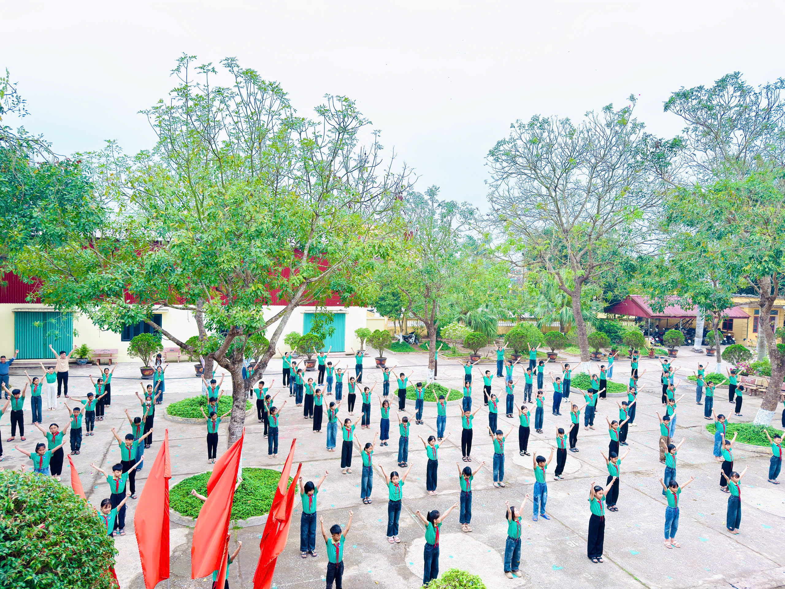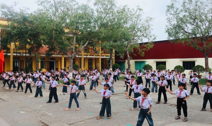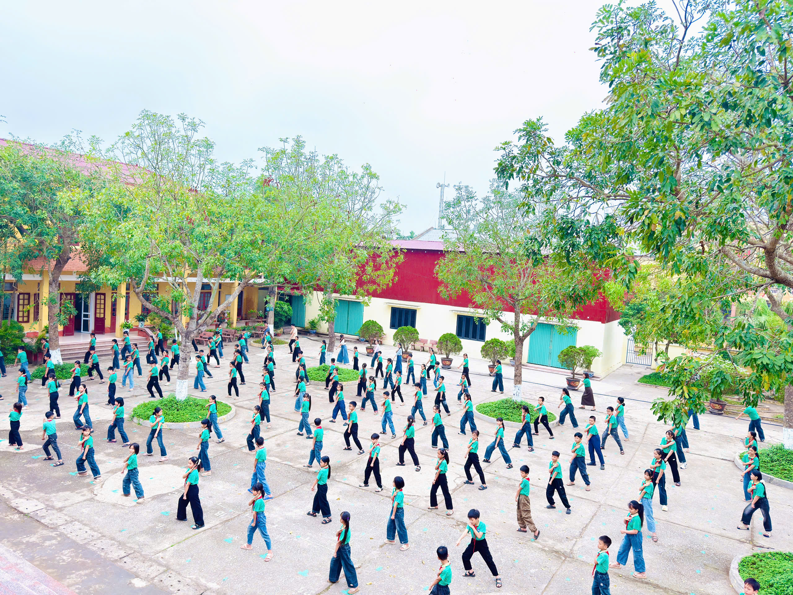 Ảnh: Giáo viên và học sinh Trường Tiểu học Hải Phong, xã Hải An, tỉnh Ninh Bình đồng diễn võ nhạc Vovinam